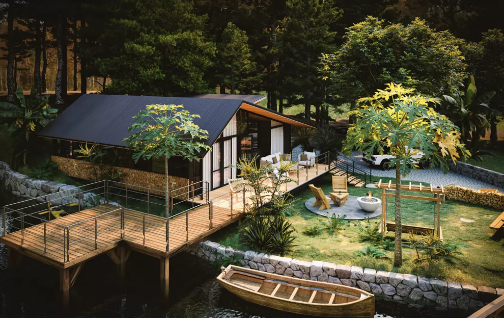 Tận dụng lợi thế đất rộng, phong cách này kết hợp giữa vườn cây ăn trái (Sầu riêng, Bơ, Măng cụt...) với các lối đi dạo rải sỏi, hồ cá và chòi nghỉ. Đây là xu hướng "2 trong 1": vừa nghỉ dưỡng, vừa có nông sản sạch.